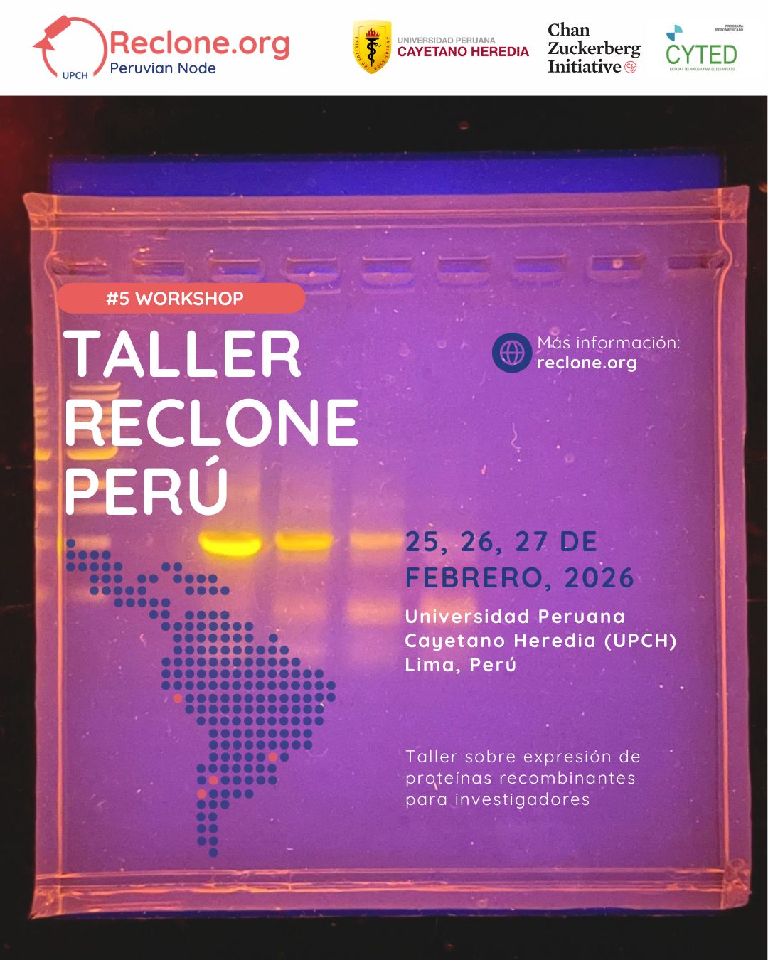 Nos complace anunciar la realización de nuestro #5 Workshop de Reclone Latinoamérica, que tendrá lugar los días 25, 26 y 27 de febrero de 2026 en la Universidad Peruana Cayetano Heredia (UPCH), en Lima, Perú.