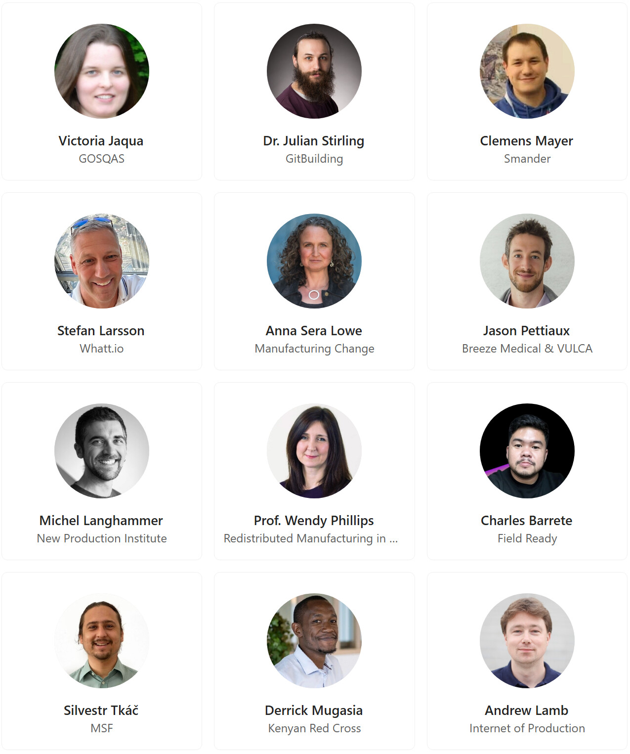 Many of the organisations are involved in manufacturing medical devices in a low-resource, humanitarian context e.g. MSF, Glia, Fild Ready.