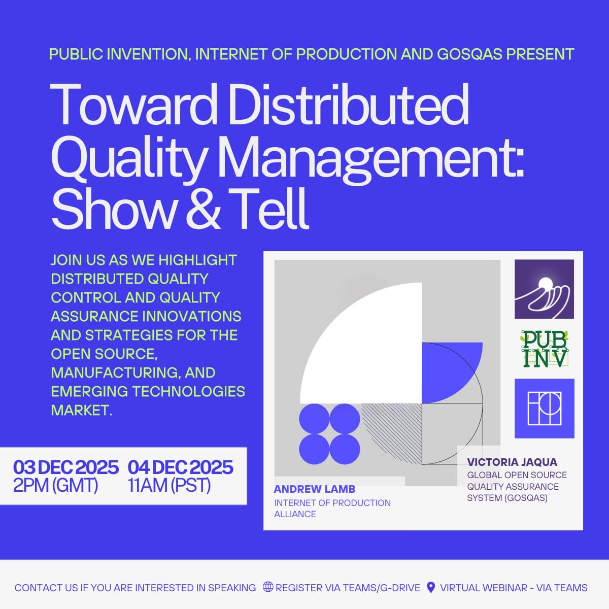 With Public Invention Lab and GOSQAS, we are convening two online gatherings to share ideas and innovations that might help the world to overcome this challenge. Register to attend if you are looking for ideas, innovations and new connections. The events are co-hosted by Andrew Lamb and Victoria Jaqua.